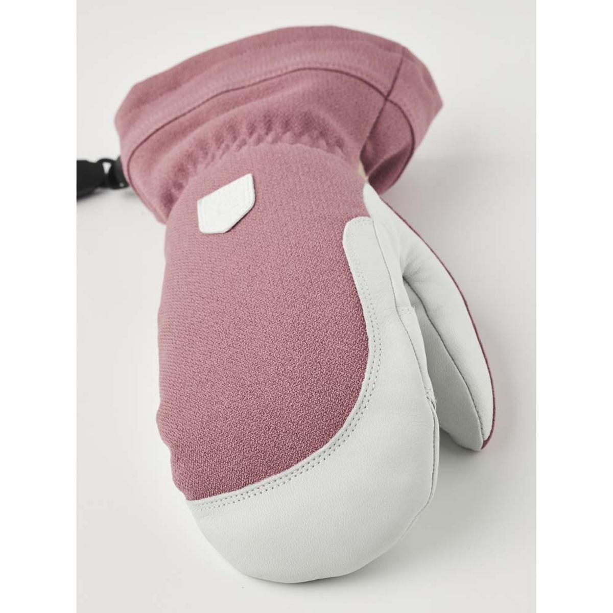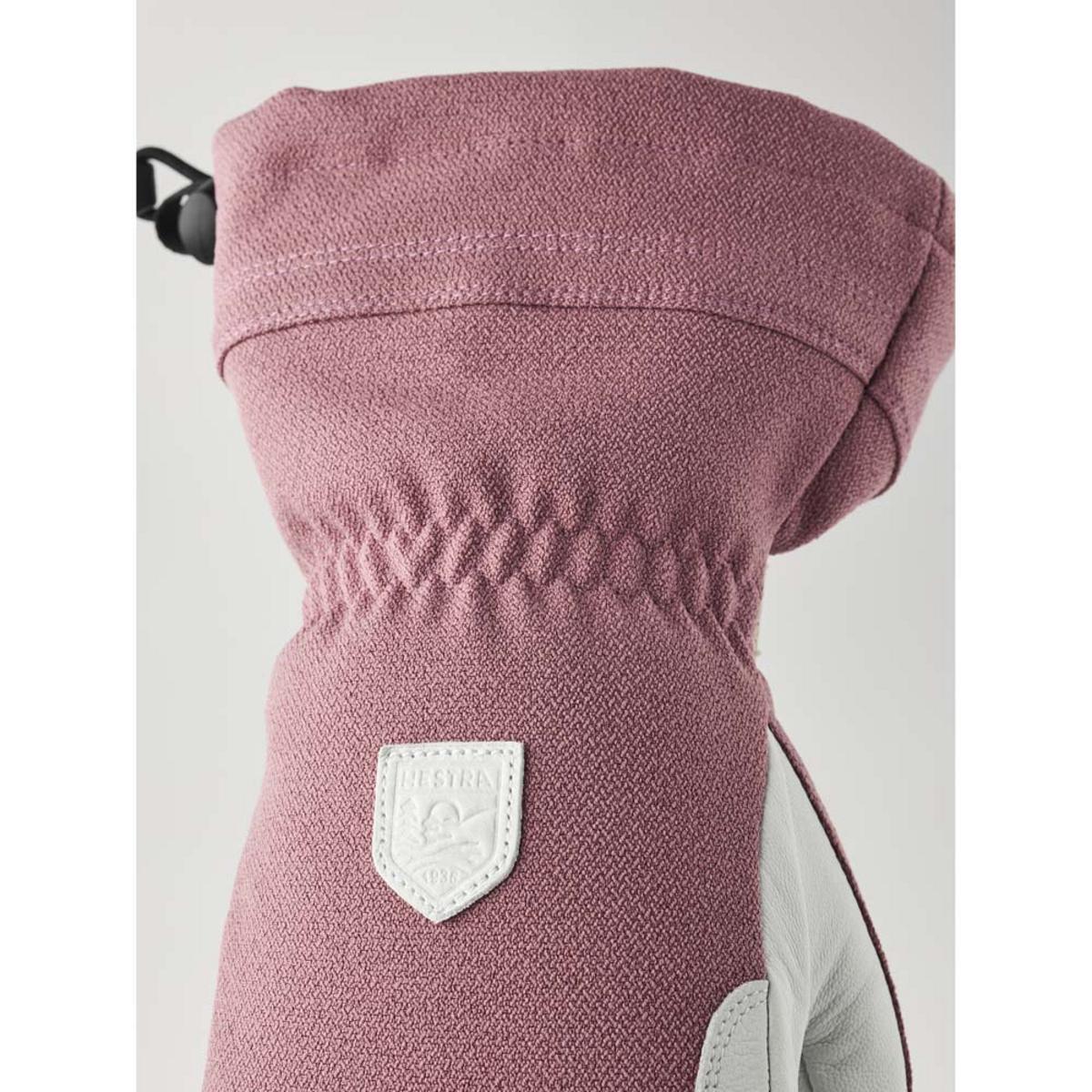 The Women's Patrol Gauntlet Mitt is designed for downhill skiers looking for a reliable companion for long days on the mountain. A mitten version, it traps more air than a glove, making it ideal if you are prone to cold fingers. Sewn in a hardwearing, weather-resistant outer material - Hestra's classic Army Leather and softshell fabric - and featuring well-thought-out functions. The removable liner contains warm synthetic insulation and can be detached to wash or dry. The liner can also be replaced with another, thinner liner if you are out ski touring, for example, and get too hot on the upward route. The cut is slightly slimmer to fit a woman's narrower hand, and the fingers are curved for better grip. A wrist strap helps you keep control of the gloves and a carabiner lets you fasten them to your jacket, for example, when you're taking a break. Also available as 5-fingers model and a men's fit.