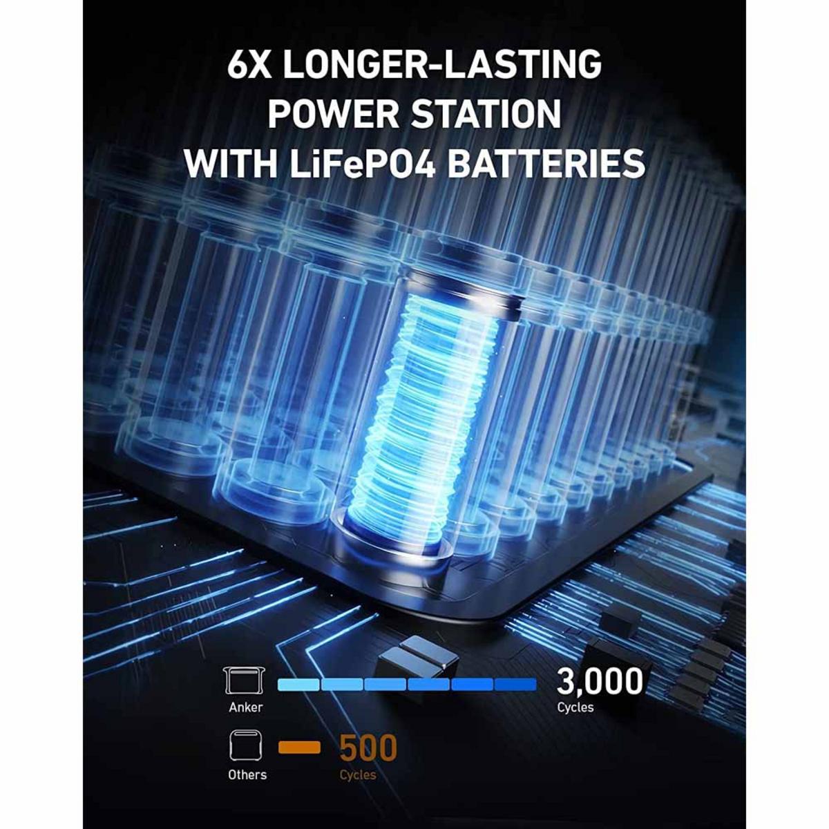 - Long-Lasting Portable Power Station With a 10-Year Lifespan: With our proprietary long-lasting technology InfiniPower, combined with LiFePO4 batteries, ultra-durable electronic components, a smart temperature control system that monitors temperature up to 100 times per second, and impact-resistant structural design, Anker 757 PowerHouse is built to last over a decade, even with everyday use.